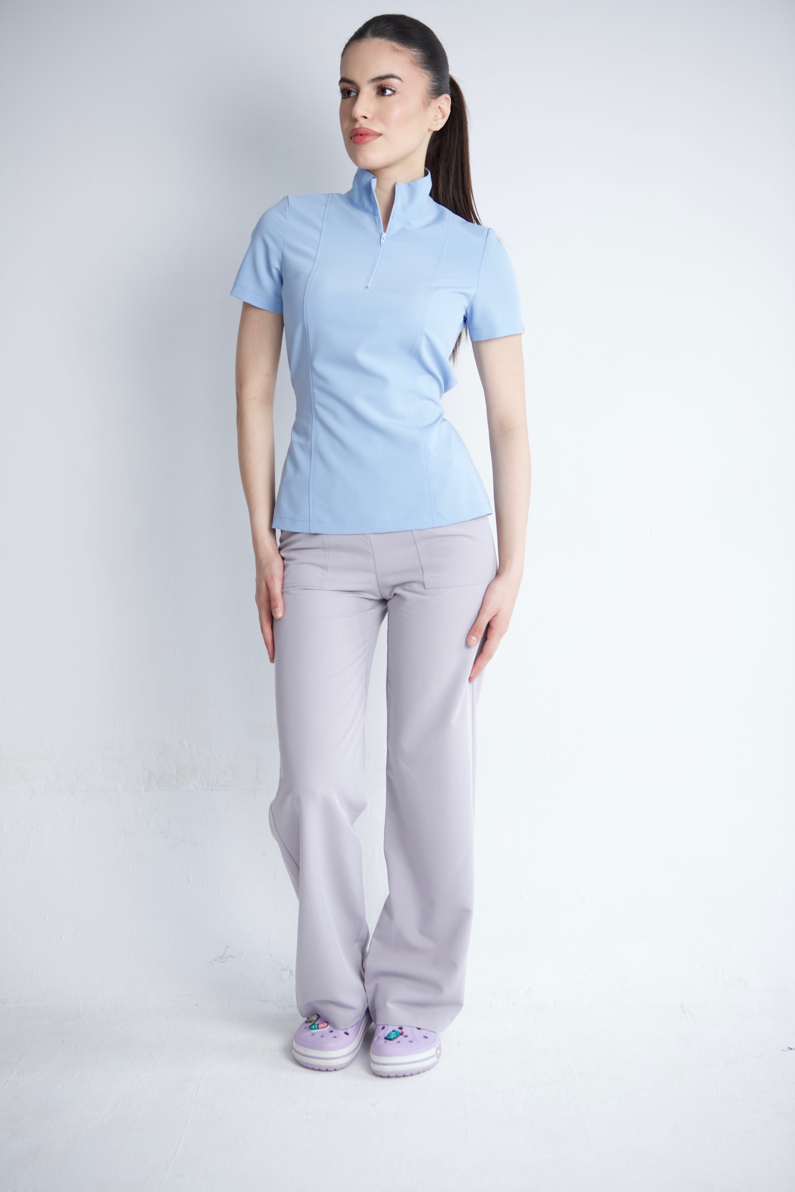 Женская медицинская блуза Medici 077 голубого цвета — свежая, лёгкая и располагающая к доверию. Мягкий чистый оттенок снимает тревогу и работает на вас ещё до первого слова. Крой этой медицинской блузы для врача продуман до мелочей: точное плечо, свободный рукав, аккуратная талия, выверенная длина. Никакой натянутости — только собранность и комфорт.