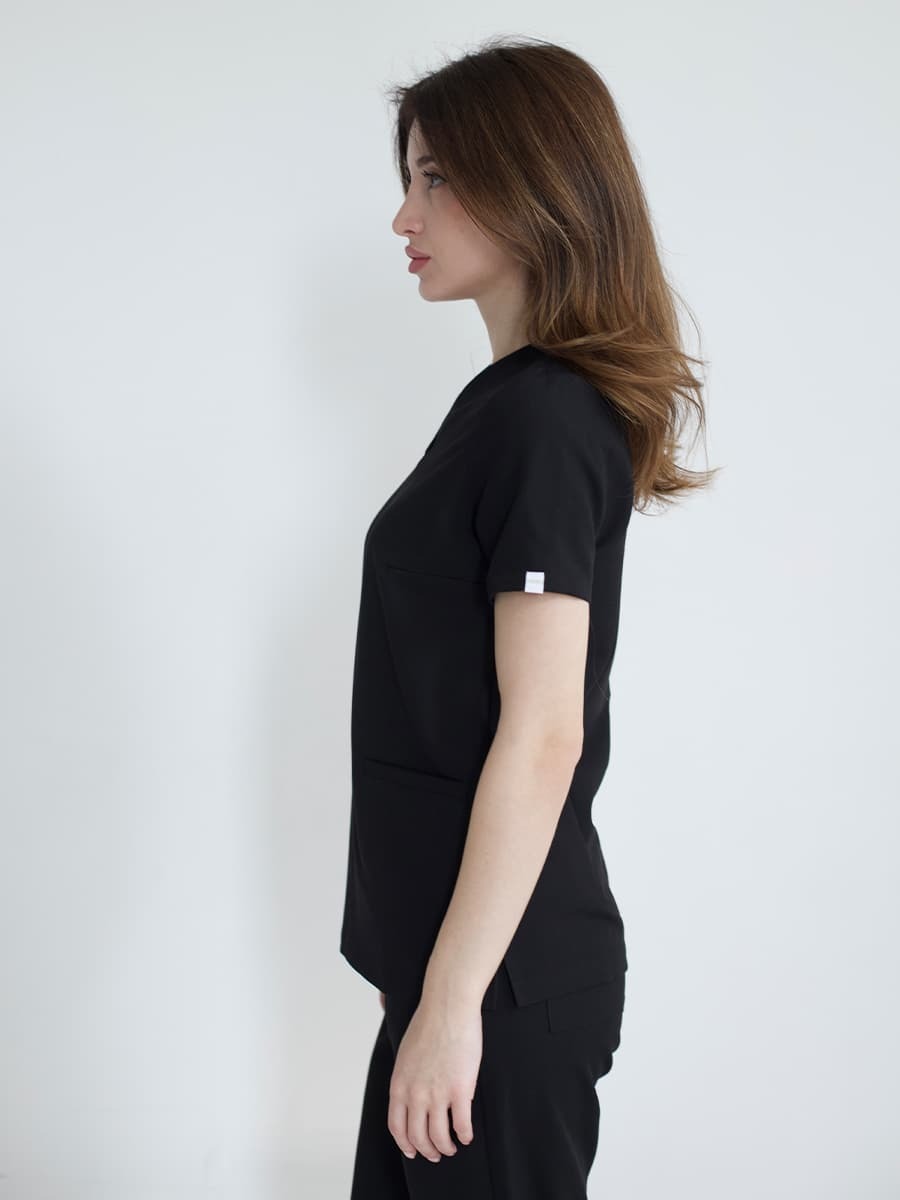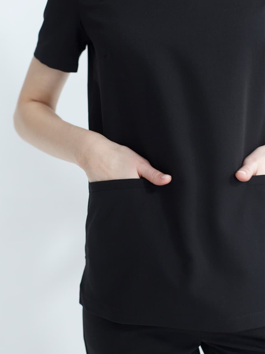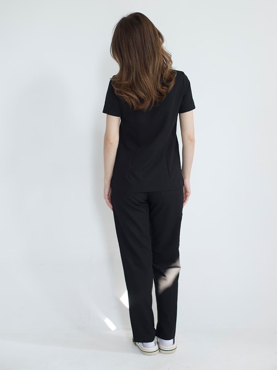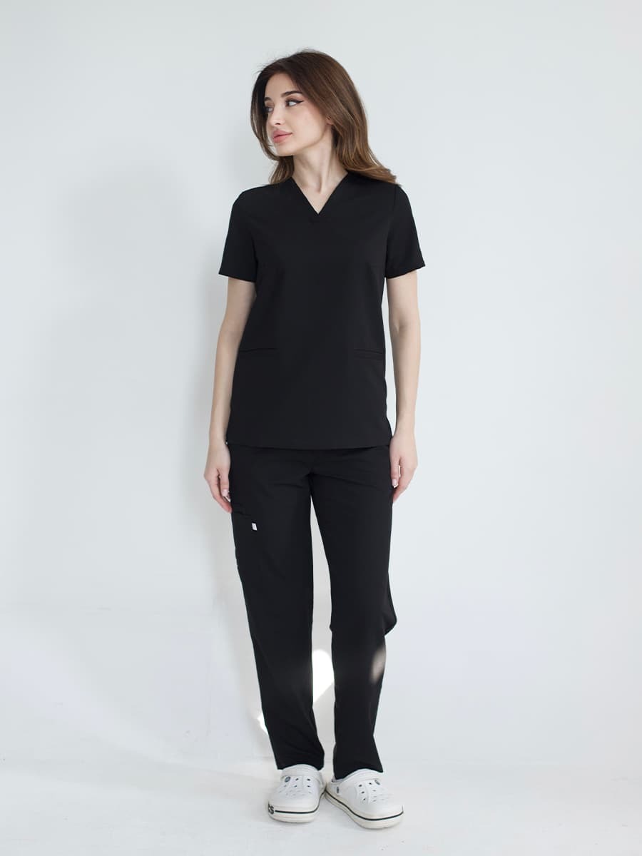 Блуза и брюки скроены так, что силуэт собранный, но тело дышит. Ничего не жмёт, ничего не провисает. Движения свободные — будь то операционная, кабинет или приём на двадцать человек подряд.