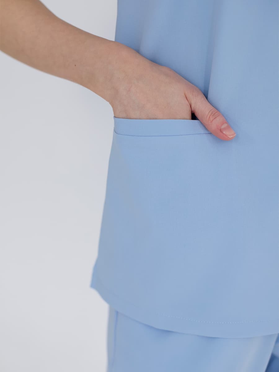 Базовый медицинский костюм Medici в голубом — форма, которая закрывает все потребности врача за одну покупку. Чистый спокойный оттенок голубого снимает напряжение у пациента ещё до начала приёма и создаёт ощущение надёжности, профессионализма и порядка. Вы выглядите собранно — пациент чувствует себя в безопасности.