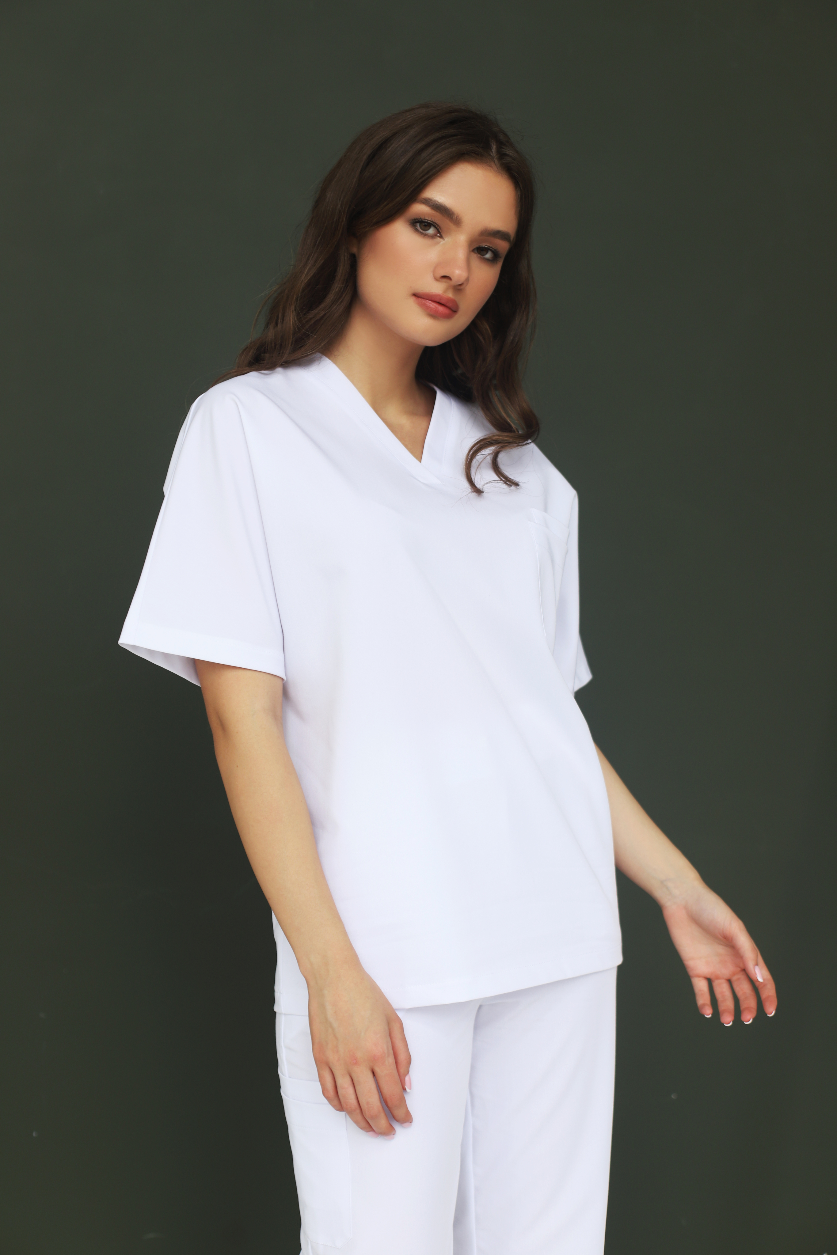 Оверсайз снимает с белого его главную проблему — ощущение стерильной робы. Объём делает силуэт живым, подвижным, современным. Это не форма, в которую тебя одели. Это одежда, которую ты выбрал.
