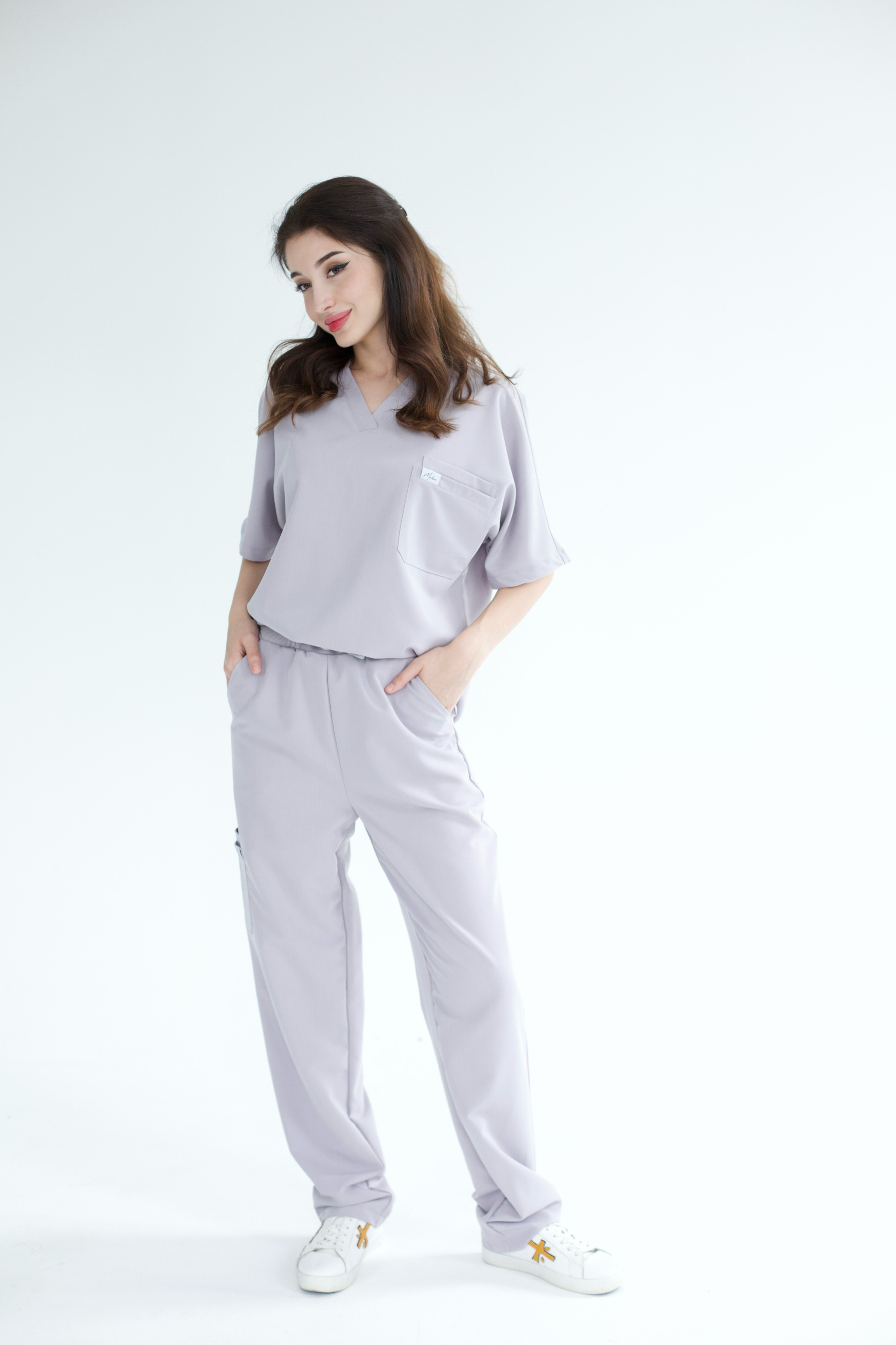 Оверсайз в сером — это базовая вещь, возведённая в абсолют. Свободный крой убирает всё лишнее: подгонку, натяжение, борьбу ткани с телом. Серый убирает всё остальное: цветовой шум, визуальную нагрузку, необходимость «попадать» в палитру клиники. Вместе они создают костюм, о котором не думаешь. Надел — и забыл. А значит, голова свободна для того, что действительно важно.